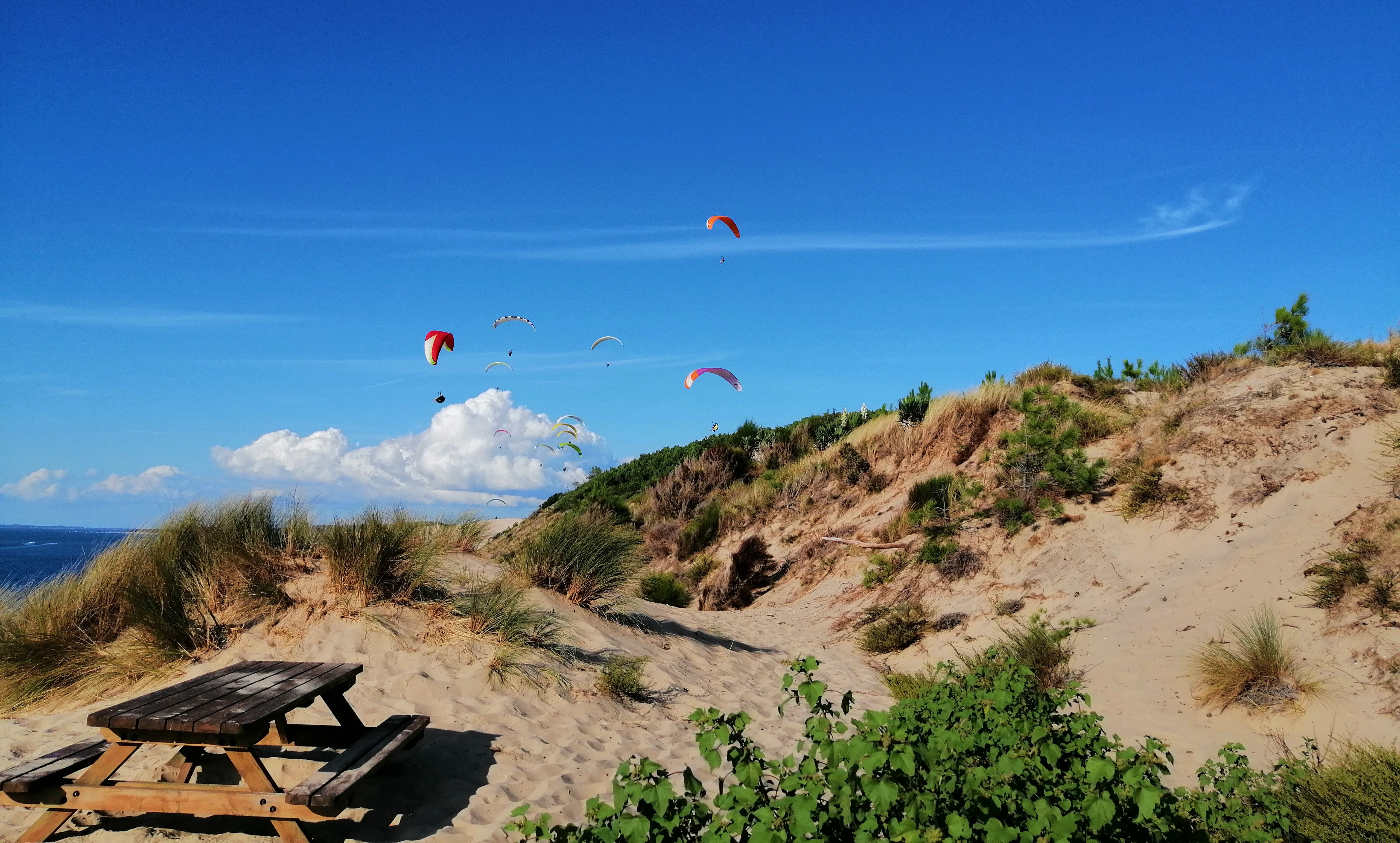 Die Dune du Pilat, ca. 120 m hoch und 6 km lang, liegt bei Arcachon in der Nähe von Bordeaux (Frankreich) und ist die grösste Wanderdüne Europas. Das Fliegen an den Dünenhängen ist mit dem Fliegen in den Schweizer Bergen nicht vergleichbar. Durch den laminaren Seewind, der auf die Dünen trifft, sind stundenlange Flüge an der Tagesordnung. Im gleichmässigen Aufwindband zu fliegen ist sehr ruhig und entspannend. Ausserdem ist die grosse Düne der perfekte Spielplatz für Rückwärtsstartübungen, Touch and goes, Wingovertraining und vieles mehr. FLIEGERISCHES PROGRAMM Die Düne bietet fast alles, was das Fliegerherz begehrt. Vom Anfänger bis zum Profipiloten…