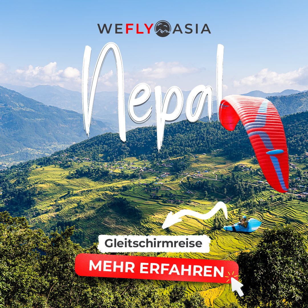 Eine unvergessliche Reise zu den majestätischen Gipfeln des Himalayas Erlebe die Faszination Nepals aus der Vogelperspektive! Unsere Gleitschirmreise führt dich durch atemberaubende Landschaften, kulturelle Highlights und bietet dir einzigartige Flugerlebnisse. Begleite uns auf eine Reise, die Abenteuer, Entspannung und unvergessliche Erinnerungen verspricht. Die Highlights der Tour kurz zusammengefasst: Flüge in beeindruckenden Landschaften: Fliege über einige der spektakulärsten Landschaften Nepals. Die umliegenden Bergketten und die unberührte Natur bieten dir unvergessliche Flugerlebnisse. Erlebe die besondere Thermik und die einzigartigen Flugbedingungen, die dieses Gebiet so besonders machen. Kulturelle Erlebnisse in traditionellen nepalesischen Dörfern: Tauche ein in die reiche Kultur Nepals. Besuche traditionelle Dörfer und erlebe…